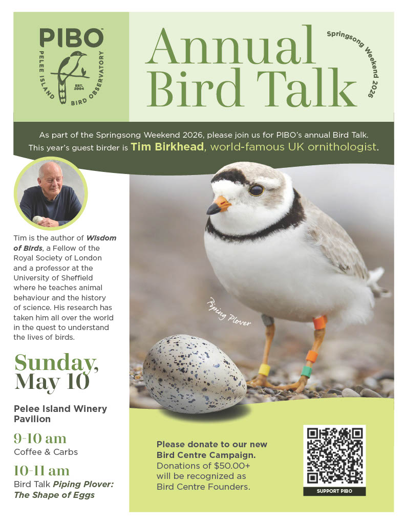 As part of the Springsong Weekend 2026, please join us for PIBO’s annual Bird Talk. This year’s guest birder is Tim Birkhead, world-famous UK ornithologist.